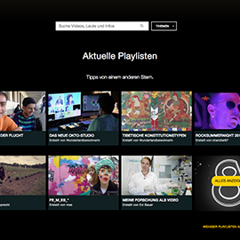 Die neuesten und beliebtesten Videos, aktuelle Playlisten und Newsbeiträge warten darauf, von dir entdeckt zu werden. Durch das Erstellen eines Accounts hast du die Möglichkeit deine eigenen Interessenschwerpunkte hervorzuheben und dir so ein individuelles Programm zusammenzustellen.