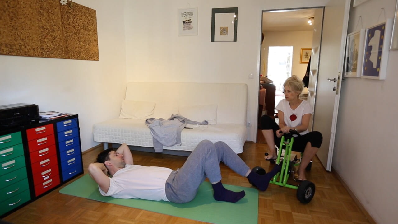 Georg stört Gitti bei ihren täglichen Workout. Sie fordert social distancing.