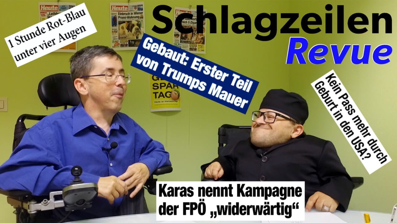 Diese Woche in der #SchlagzeilenRevue: Wenns nach der FPÖ geht, dann hat sich Othmar Karas diese Woche wohl unabsichtlich als Kommunist geoutet. Norbert Gerwald Hofer hat seinen Schatten-Verkehrsminister HELMI - Augen auf, Ohren auf vorgestellt & Frau Dr. Pamela Rendi-Wagner hatte eine „1-Stündige Sprechstunde“ mit Vizekanzler HC Strache. Donald J. Trump war diese Woche ganz auf Kinder fixiert. Politisch kann er die (fast) Fertigstellung seine Mauer verkünden. Kalifornien ist schon mal sicher!