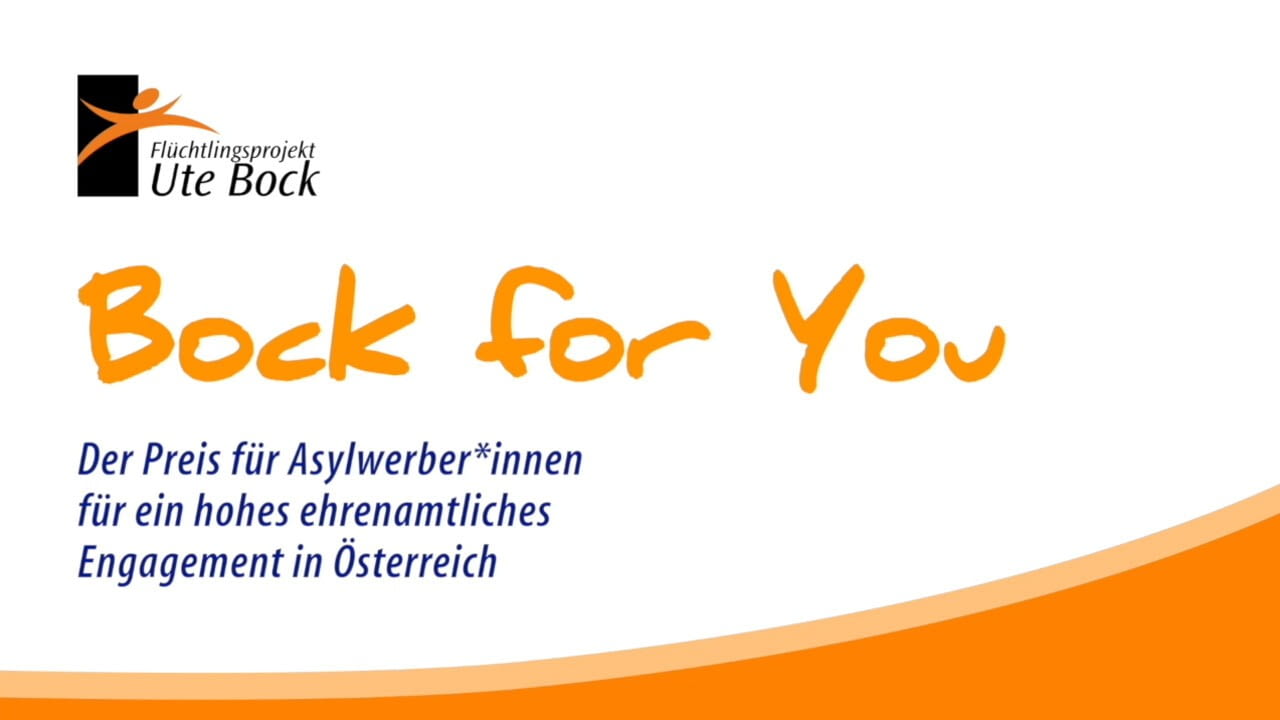 Bock for You – ist ein Preis für Asylwerber*innen in der Grundversorgung für hohes ehrenamtliches Engagement, gestiftet durch den Vorstand des Flüchtlingsprojekts Ute Bock. Der Verein will Menschen ins Zentrum stellen, die helfen, obwohl sie selbst auf Hilfe angewiesen sind. Im Rahmen des Todestages der Gründerin Ute Bock wurden drei Preisträger für ihr Engagement ausgezeichnet und honoriert. "achbar" berichtet von dieser Preisverleihung.