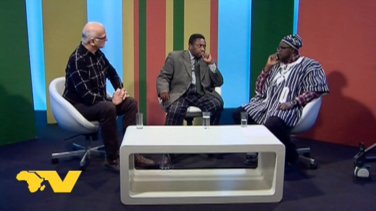 Moderator Mag. Alexis Neuberg, Leiter von RATV begrüßt Univ. Prof. Dr. Adams Bodomo, Professor für afrikanische Sprachen und Literaturen und Dr. Erwin Ebermann, Universitätslehrer für Afrikawissenschaften der Universität Wien zur Diskussion der afrikanischen Wissenschaften an den Universitäten.