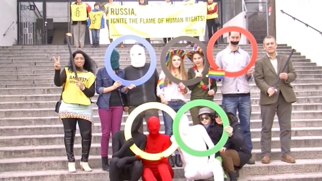 Sergej Nikitin (Generalsekretär Amnesty International Russland) zu Besuch bei seinen österreichischen KollegInnen. Gemeinsam wurde eine Protest-Fotoaktion gegen die Menschenrechtsversäumnisse in Russland organisiert.