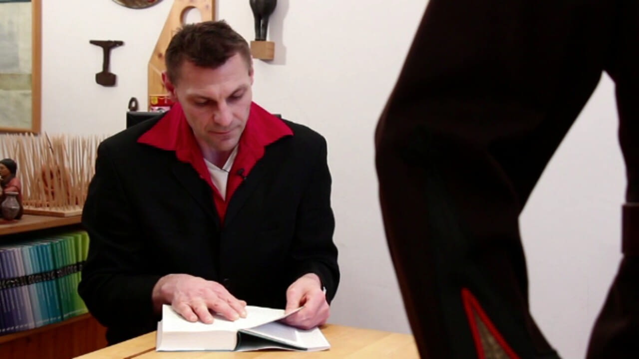 PassantInnen und prominente Persönlichkeiten lesen aus Bertha von Suttners Antikriegsroman. Diesmal: der Schauspieler Günther Hojesky.