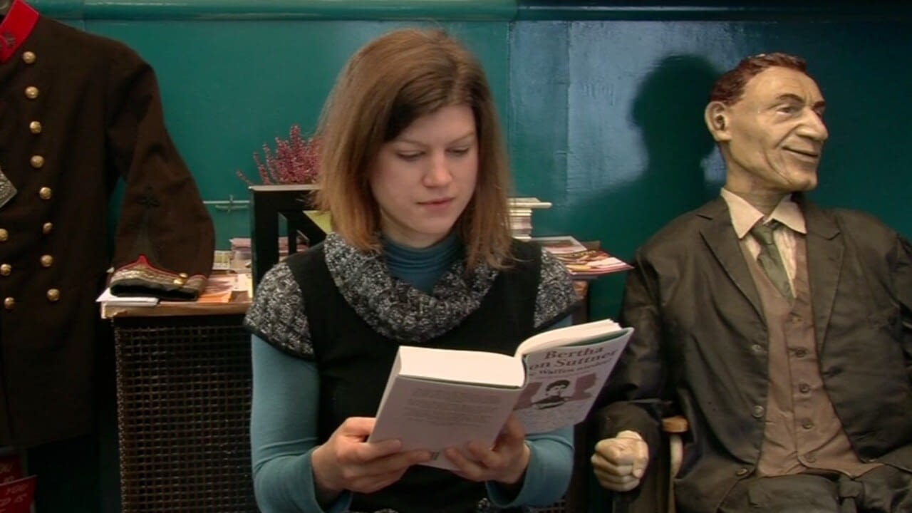 PassantInnen und prominente Persönlichkeiten lesen aus Bertha von Suttners Antikriegsroman. Diesmal: Familienhelferin Christina Raab. Gelesen wird im Foyer der Breitenseer Lichtspiele, dem nach eigenen Angaben ältesten dauernd bespielten Kino der Welt.