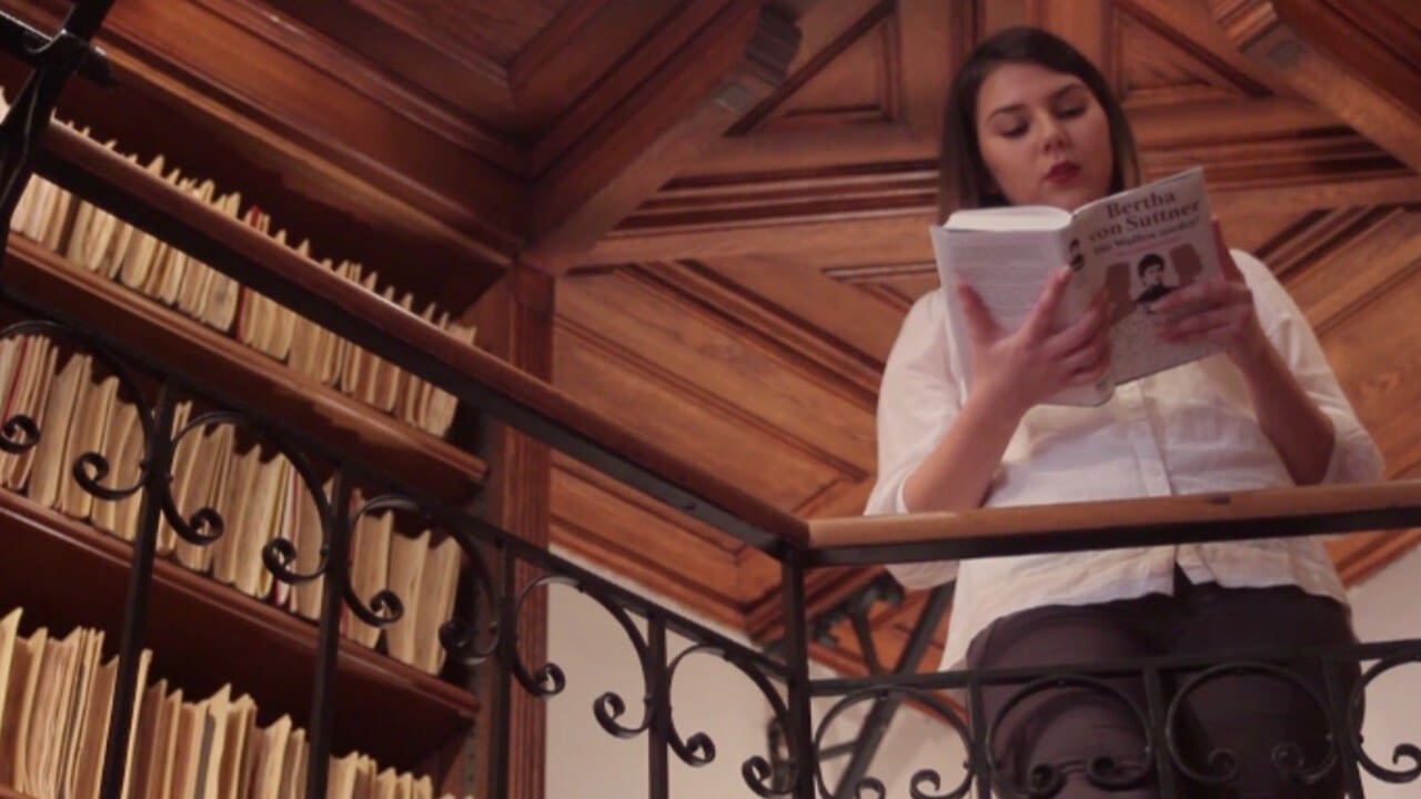 PassantInnen und prominente Persönlichkeiten lesen aus Bertha von Suttners Antikriegsroman. Diesmal: die Schauspielerin Brigitta Kanyaro.