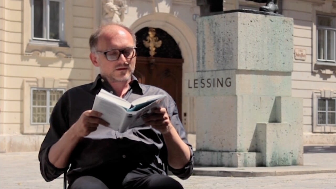 Die heutigen Zeilen aus Bertha von Suttners "Die Waffen nieder" liest Markus Schleinzer auf dem Judenplatz.