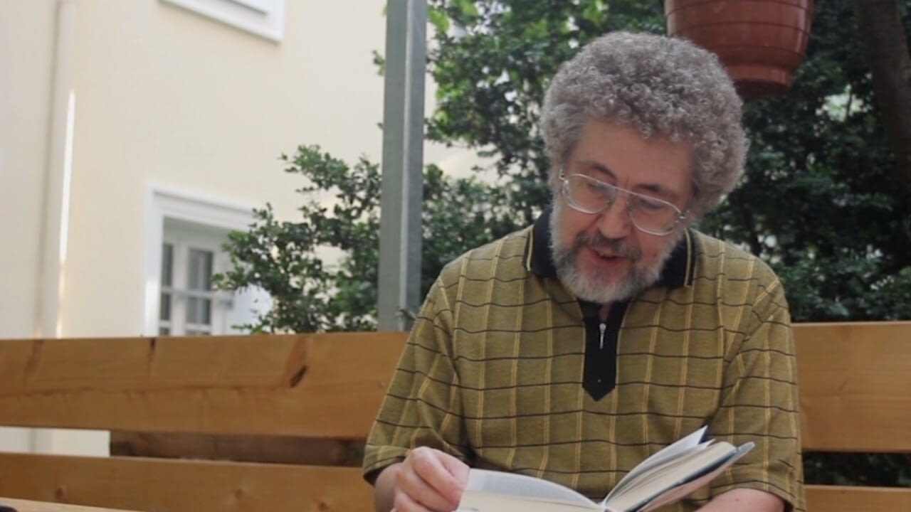 Franz Blaha liest in der sozialen Einrichtung "'s Häferl" aus Bertha von Suttners "Die Waffen nieder!".