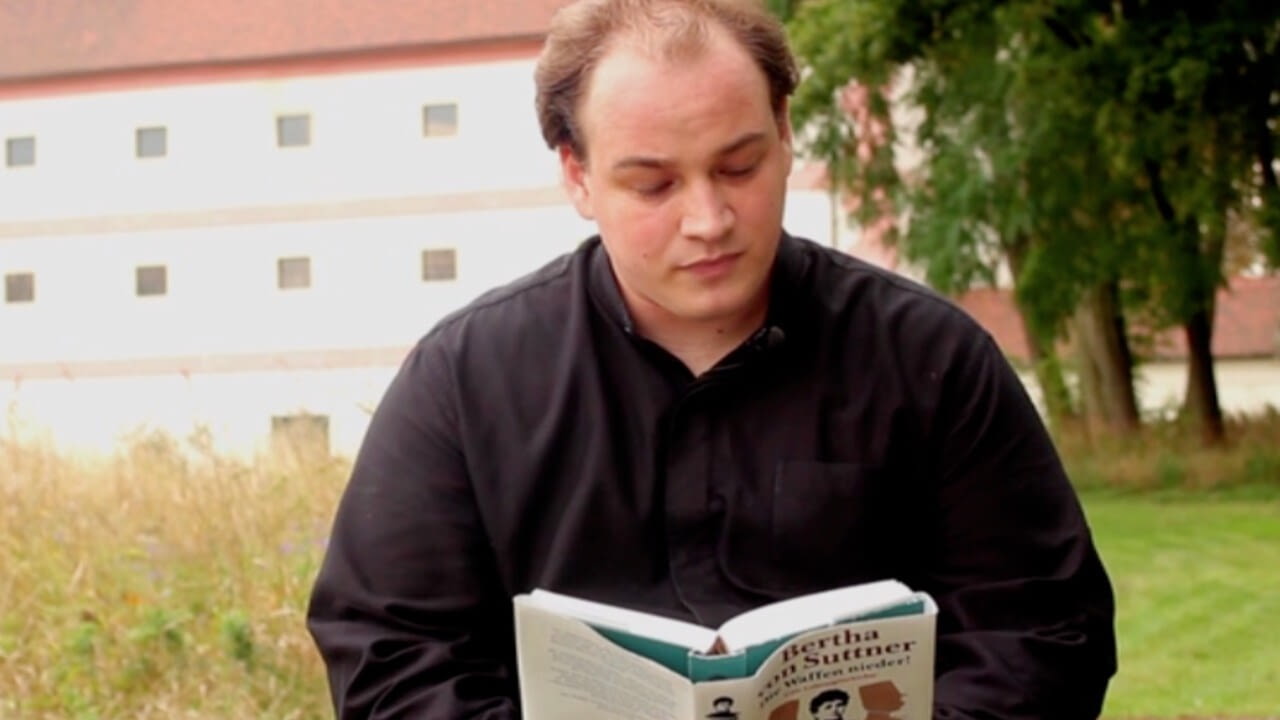Aus Bertha von Suttners Antikriegsroman "Die Waffen nieder" liest heute der Musiker und Mitglied des jungen Wiener Streichquartetts "Adamas Quartett, Jakob Gisler, vor dem Schloss Harmannsdorf.