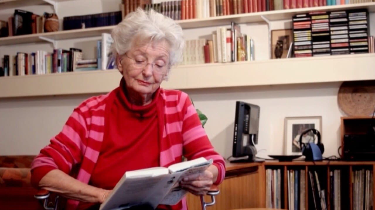 Rosmarin Frauendorfer (Pensionistin) liest eine Passage aus Bertha von Suttners Antikriegsroman "Die Waffen nieder!".