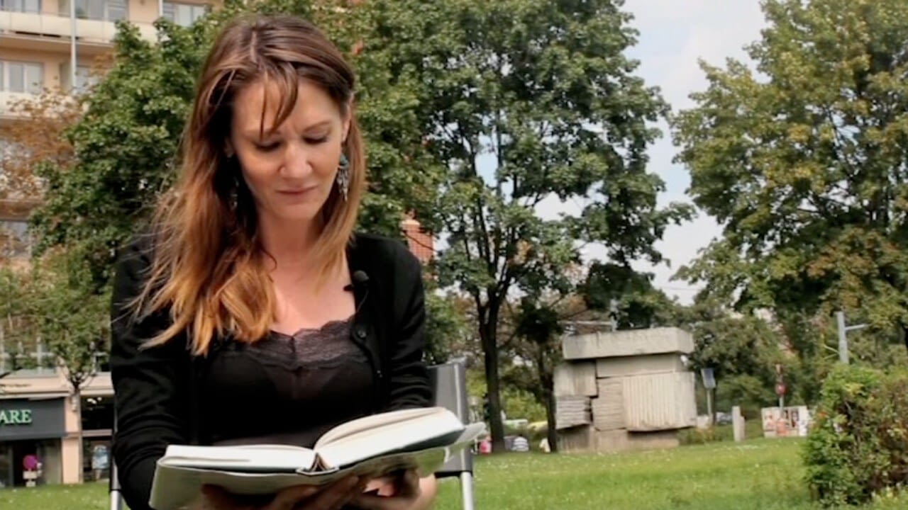 PassantInnen und prominente Persönlichkeiten lesen aus Bertha von Suttners Antikriegsroman "Die Waffen nieder!". Heute: Christina Piringer (Schauspielerin).