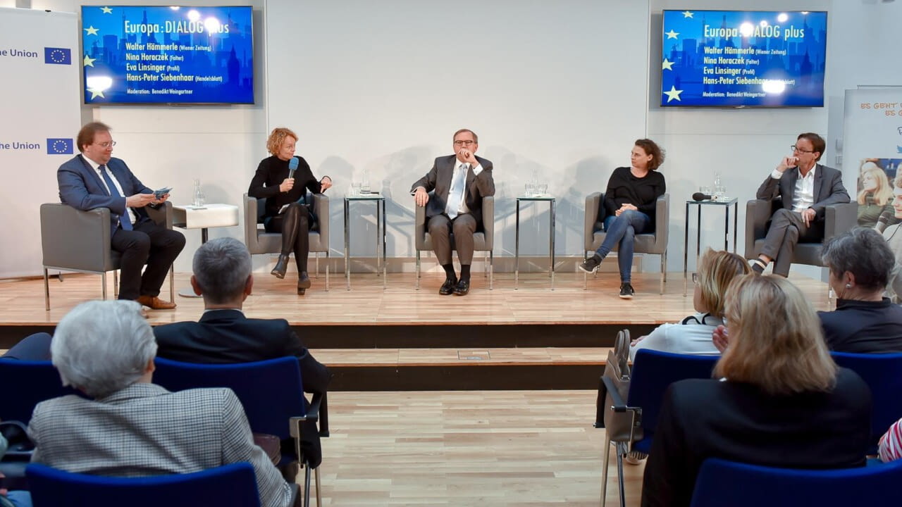 Wie europapolitisch war eigentlich die Europawahl? Walter Hämmerle (Wiener Zeitung), Nina Horaczek (Falter), Eva Linsinger (Profil) und Hans-Peter Siebenhaar (Handelsblatt) diskutieren im Gespräch mit Benedikt Weingartner die skandalgeprägten Facetten des EU-Wahlkampfs. Wer sind die Gewinner? Was bleibt von der europapolitischen Auseinandersetzung? Wurde die Klimapolitik zur Agenda aller Parteien? Welche großen Fragen stellen sich nun Europa? Welche Herausforderungen erfordern dringenden Handlungsbedarf? (Aufzeichnung vom 28. Mai 2019)
