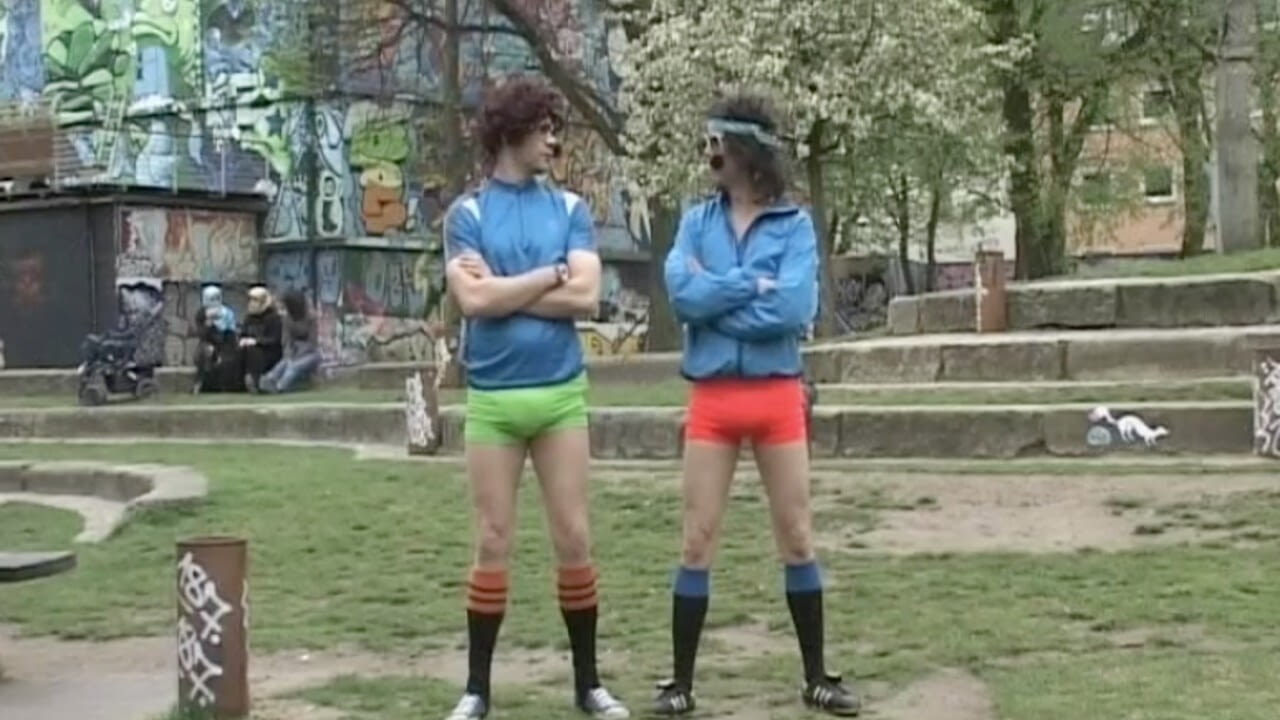 Stefan & Bernd, die beiden Telegymnastikprofis aus Hamburg, zeigen uns heute lustige Turnübungen im Park.