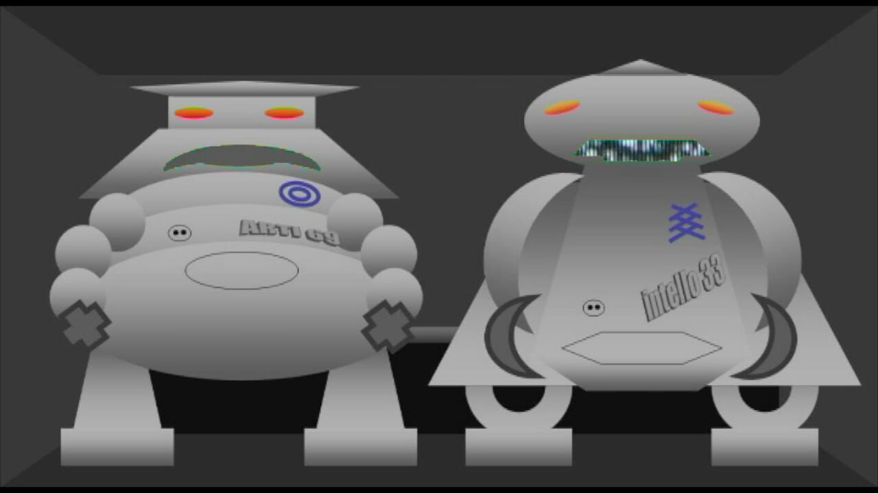 Künstliche Intelligenz, Aufstand der Maschinen, Demokratie und Religion. Die Roboter Arti 69 und intello 33 gehen elementaren Fragen auf den Grund, nachdem die Menschheit sich nicht mehr dafür zu interessieren scheint.
