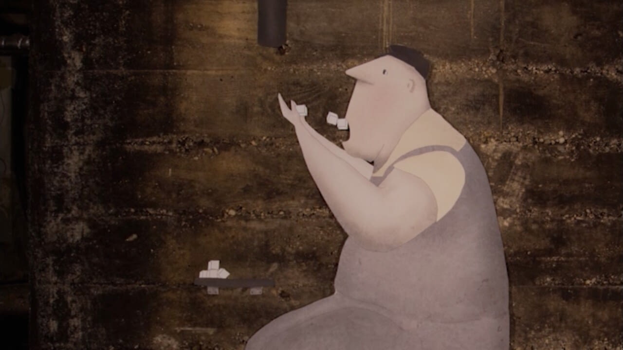 ANIMATION: Es wird dunkel. In der Nacht erwacht die tote Fabrik zum Leben. Die sich ständig wiederholende Arbeit der Sugarmen erinnert an mechanisch industrialisierte Abläufe.