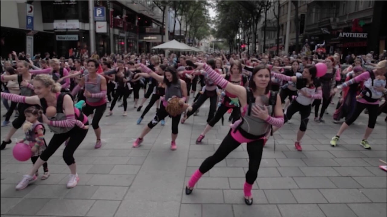 Seit 2012 finden jedes Jahr im Juni Kangatraining Charity Flashmobs im gesamten europäischen Raum statt. Mamas tanzen mit ihren Babys für einen guten Zweck. Heuer war es am 17. Juni auf der Mariahilfer Straße in Wien so weit. 300 Kanga-Mamas haben gemeinsam mit ihren Babys für SOS-Kinderdörfer getanzt und das Event zum größten Kanga-Flashmob aller Zeiten gemacht.