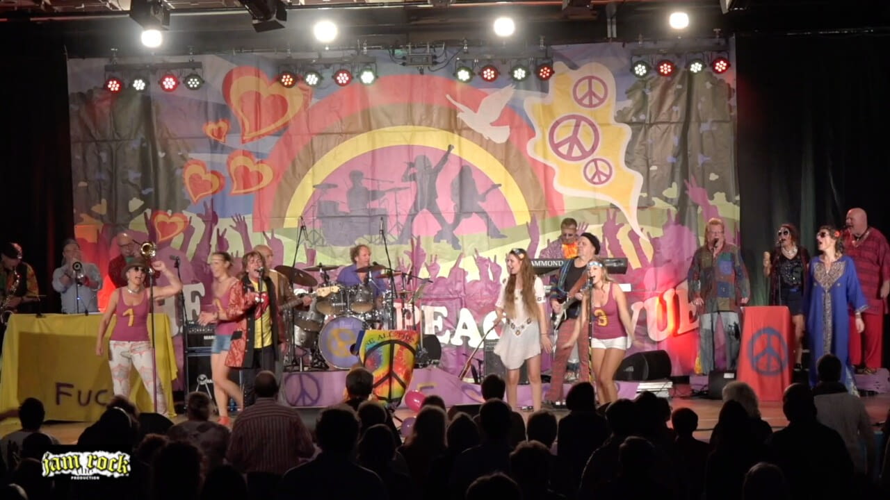 Jam the Rock entführt uns in eine blumige, bunte Zeit. Woodstock - das legendäre Peace & Music Festival der Hippiebewegung feiert heuer sein 50 jähriges Jubiläum. Anlässlich dazu zeigt Jam the Rock Ausschnitte der Show "The Love & Peace Revue - 50 Jahre Woodstock". Das 15-köpfige Ensemble lässt die Songs von Jimi Hendrix, Janis Joplin, Joe Cocker, Santana, The Who und die Geschichte der Hippie-Ära wieder aufleben.