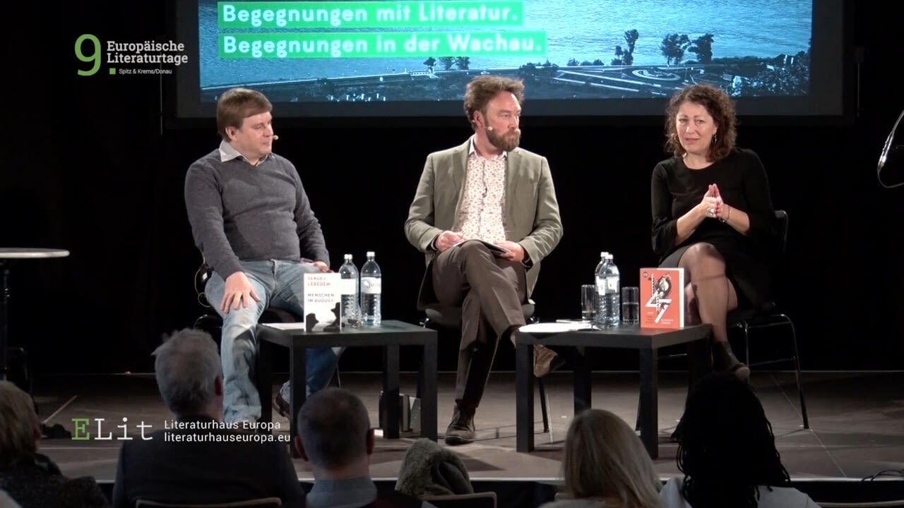 Die schwedische Autorin Elisabeth Åsbrink im Gespräch mit dem russischen Schriftsteller Sergej Lebedew. Moderation: Carl Henrik Fredriksson.