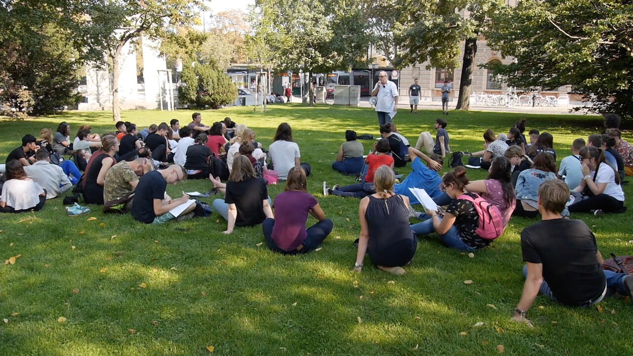 In Südwind-Workshops „Meine Revolution“ in Jugendgruppen lernen Jugendliche über die bewegte Zeit von 1917/18. Dabei steht nicht das Faktenwissen im Vordergrund, sondern was Jugendliche 1917/18 verändern wollten.Südwind begleitet darauf aufbauend Jugendliche dabei ihre Forderungen für heute im Austausch mit Gleichaltrigen aus Slowenien, Italien und Polen zu formulieren und diese auf europäischer Ebene einzubringen. „prekär“ traf die Jugendlichen beim Denkmal der Republik und in der VHS 20.