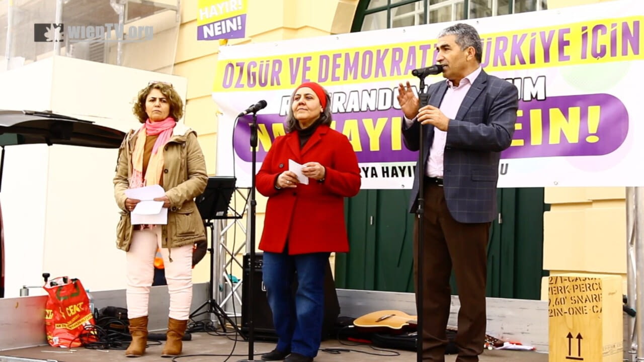 Nein zu Erdogan und seinem Regime - Am 16. April findet in der Türkei ein wichtiges Referendum statt. Recep Tayyip Erdogan will sich per Votum für ein Präsidialsystem nun ganz offiziell zum Diktator machen lassen. Hierzu gab es in Wien eine vielstimminge Kundgebung.